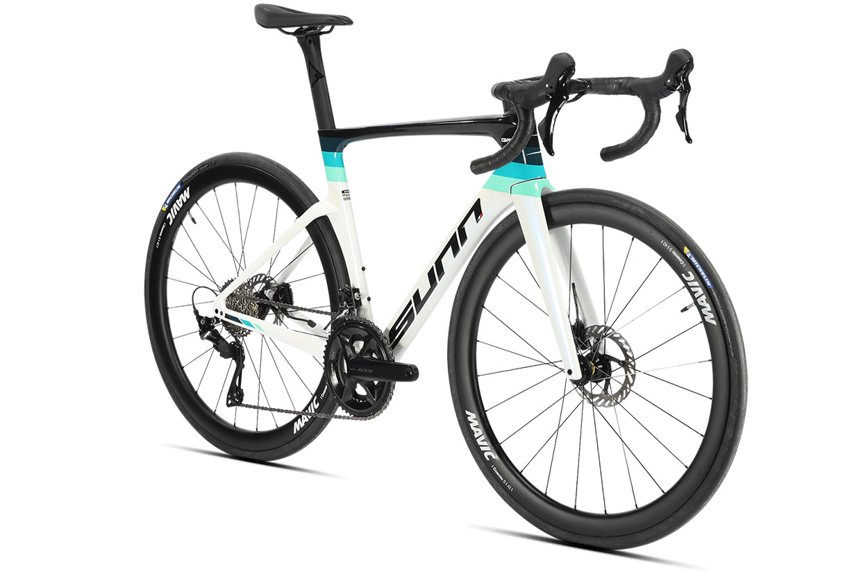 Vrhunske komponente. • 30 mm pnevmatike MICHELIN PowerCup (kolo sprejema pnevmatike do 32 mm). Sodobno kolo s širokimi platišči in pnevmatikami. • Trak za krmilo in sedež Fizik. • Karbonska kolesa na celotni ponudbi (Mavic ali DT Swiss). • Sedežna opora s profilom NACA, navdihnjena z aeronavtiko, za zmanjšanje turbulence in upora.